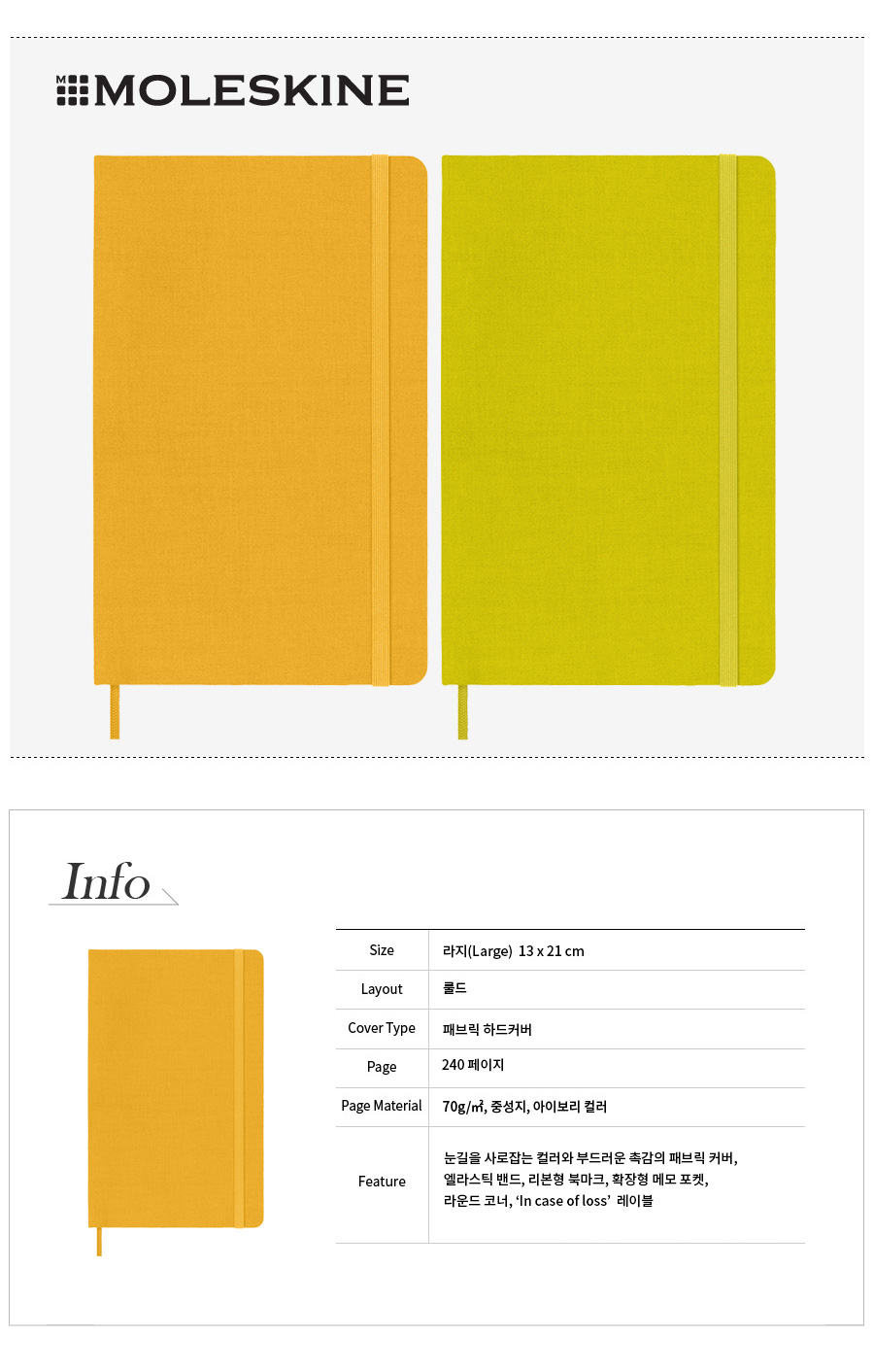 몰스킨 컬러 컬렉션 하드커버 라지 노트(룰드/색상 선택)