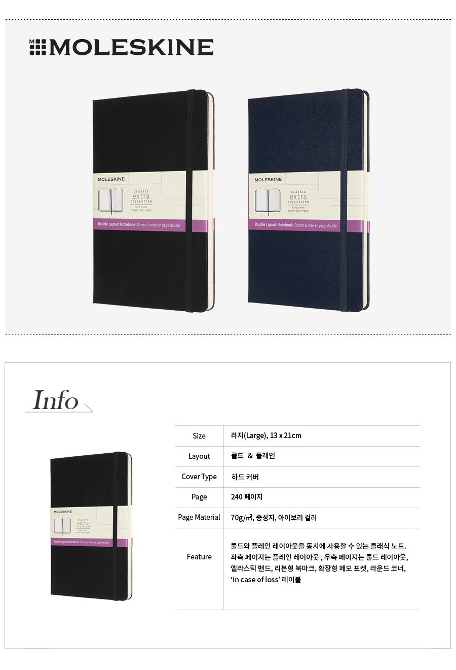 몰스킨 클래식 더블 레이아웃 노트 - 룰드 & 플레인 / 하드커버