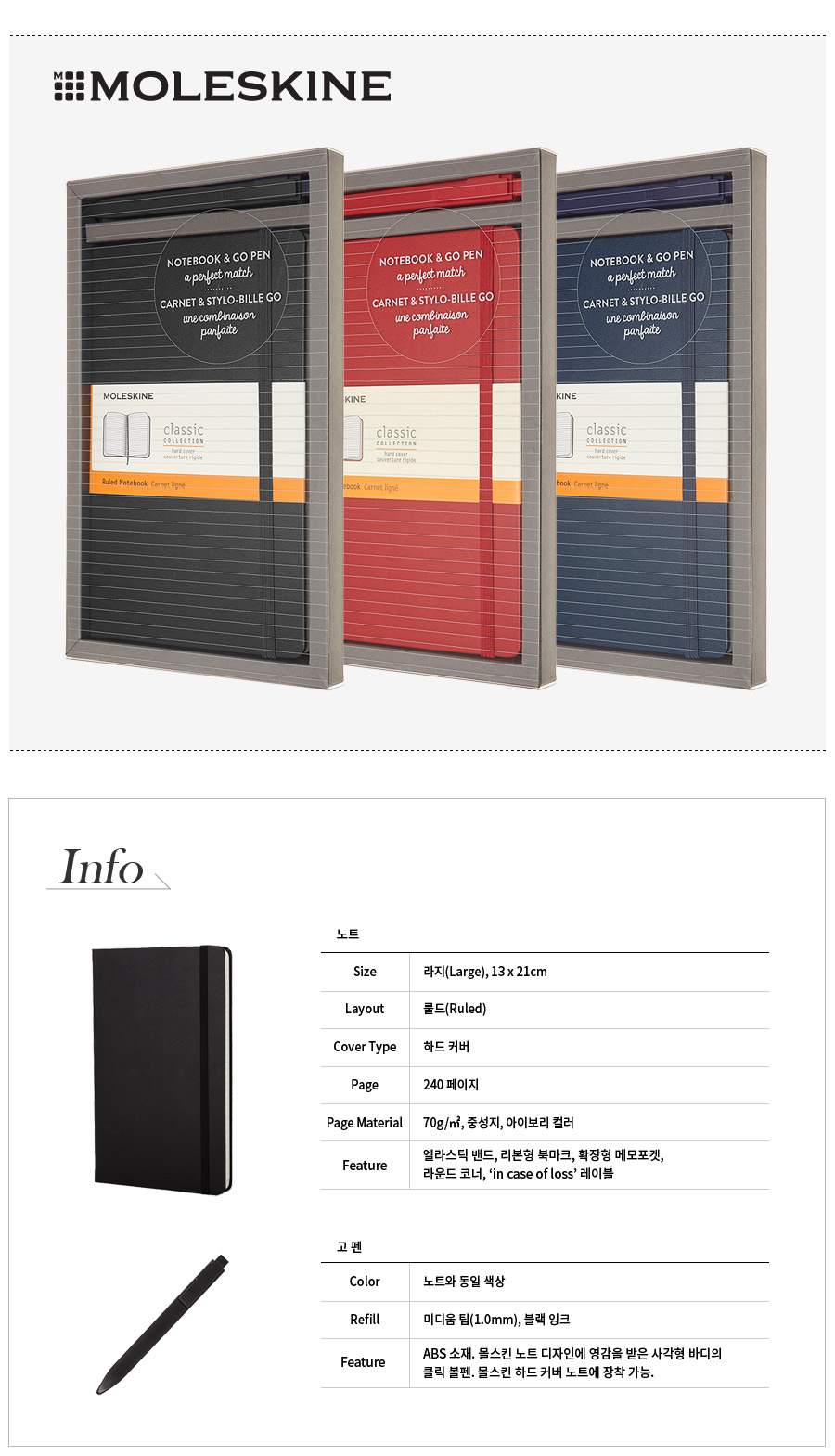 몰스킨 클래식 노트 + 캡 롤러펜 세트