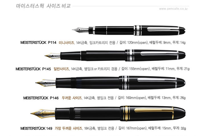 4)펜촉 사이즈 : EF-0.6mm~0.7mm, F-0.7mm~0.9mm, M-0.9mm~1.0mm