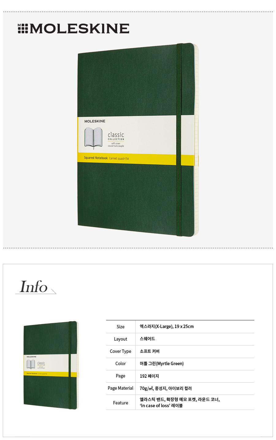 몰스킨 클래식 노트북 - 머틀 그린