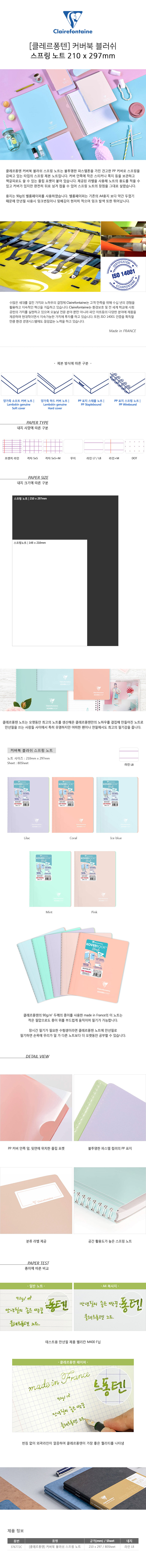 클레르퐁텐 커버북 블러쉬(Koverbook BLUSH) 스프링 노트(210 x 297mm/색상선택)