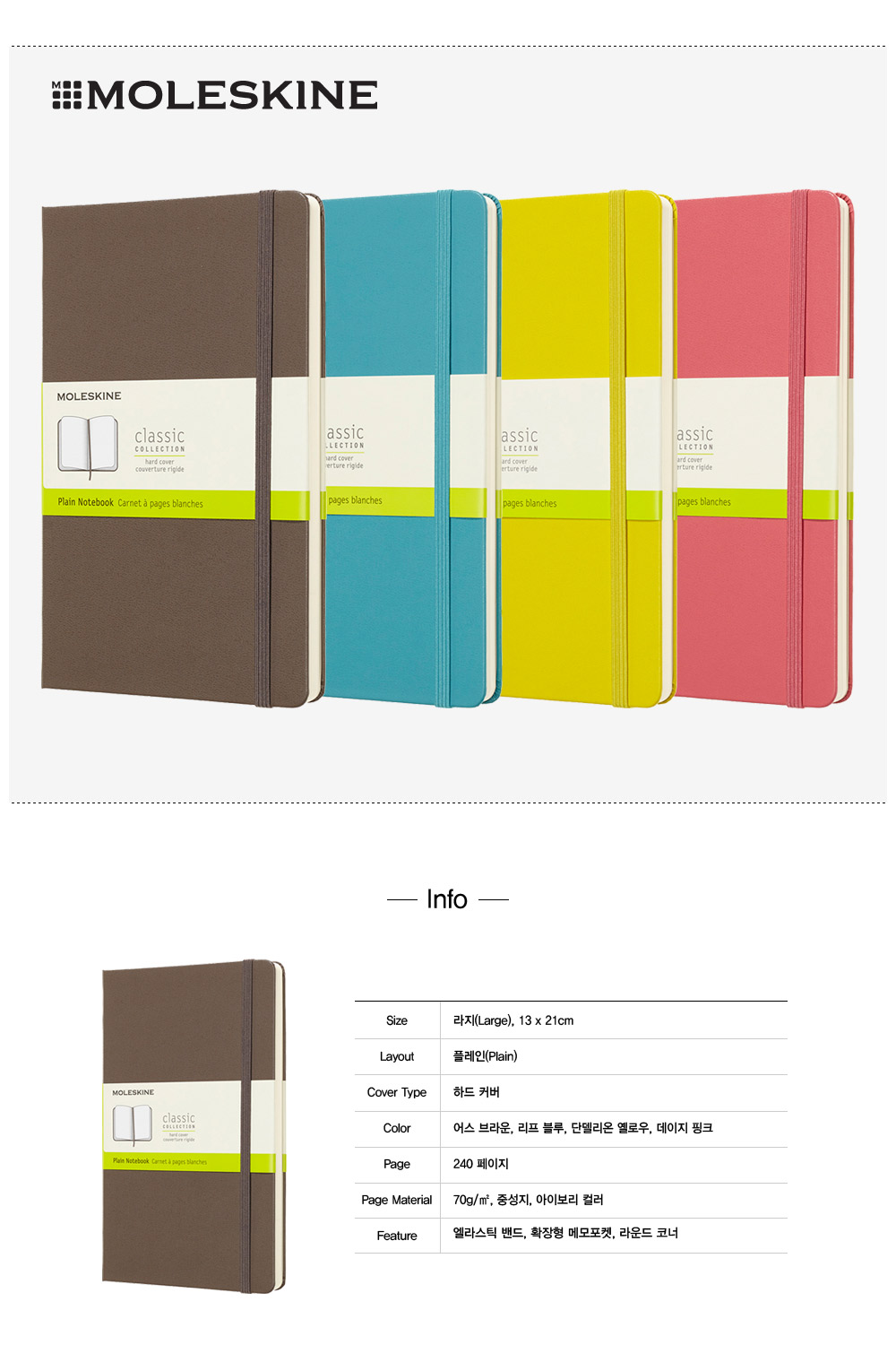 몰스킨 클래식 하드커버 플레인 라지 노트