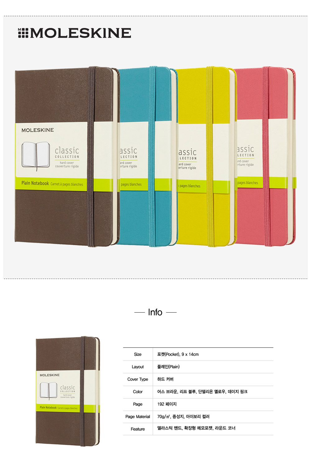 몰스킨 클래식 하드커버 플레인 포켓 노트