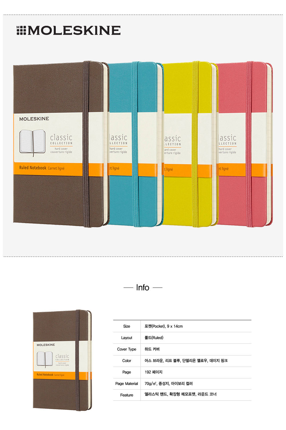 몰스킨 클래식 하드커버 룰드 포켓 노트