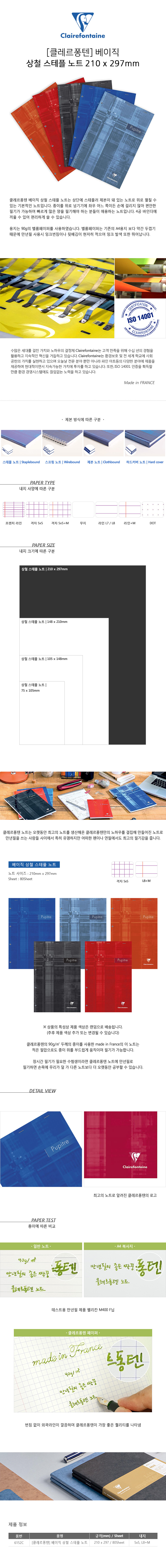 클레르퐁텐 베이직(Basic) 상철 스테플 노트(210 x 297mm)(색상랜덤)
