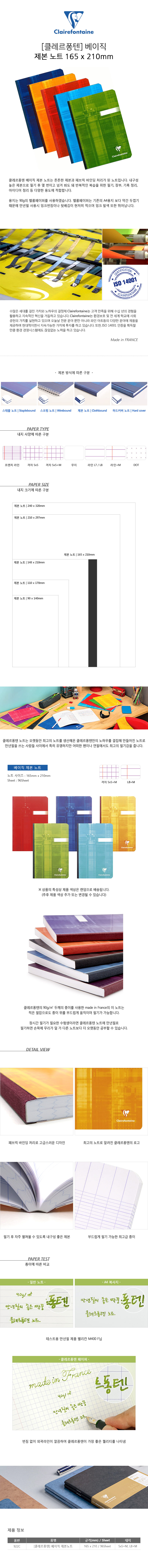 클레르퐁텐 베이직(Basic) 제본 노트(165 x 210mm)(색상랜덤)